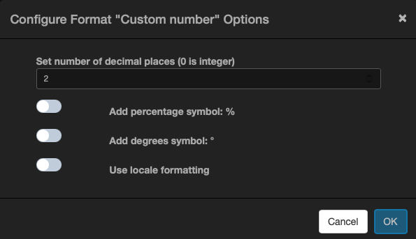 All data within Allsky is stored in consistent internal formats, so for example ALL temeopratures are stored in Degreed Centigrade. Yo will therfore probably want to format data to improve its visual appearance, typicall formatting options are