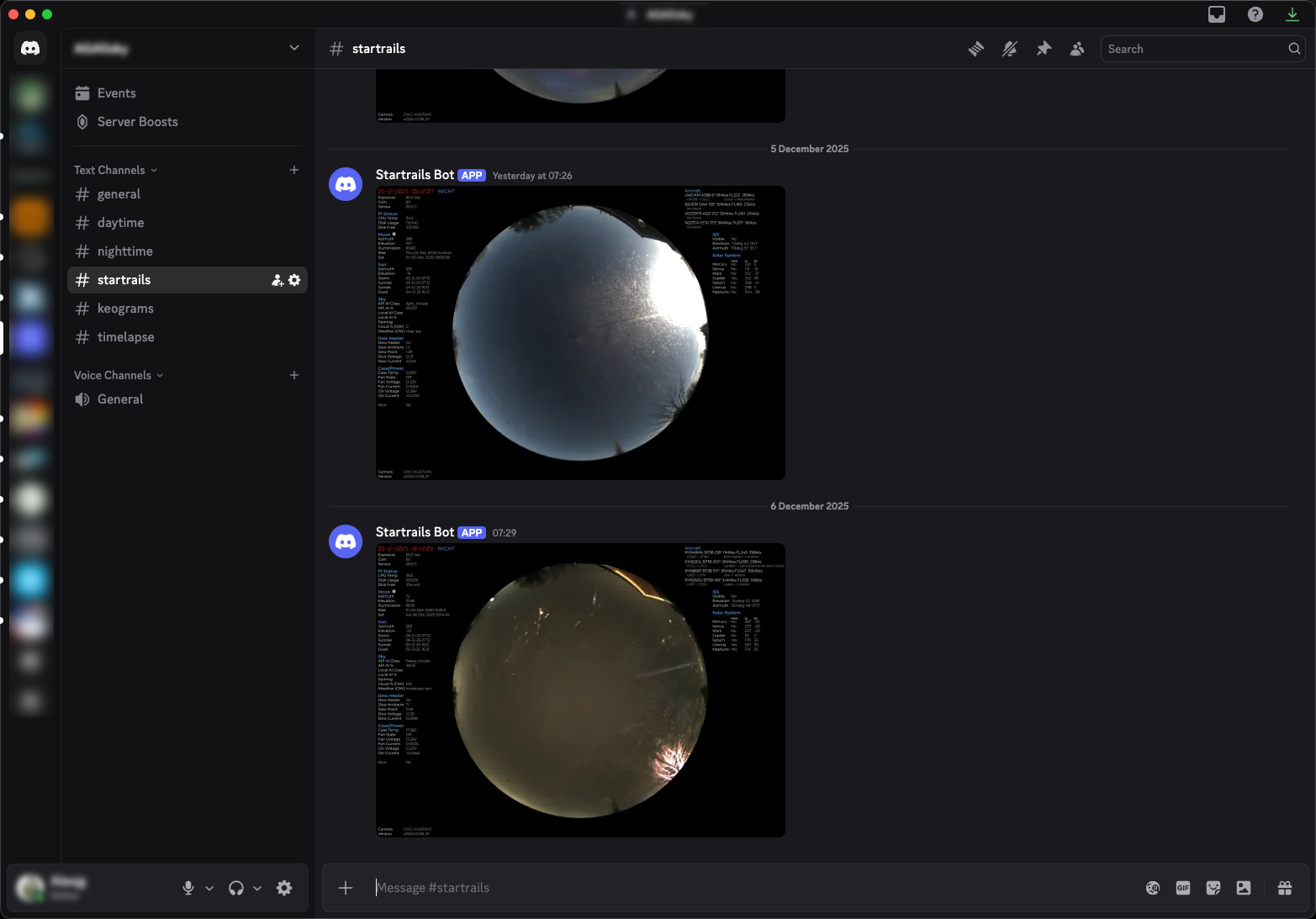 | Webhook URL | The webhook for startrails images, see notes below on Webhooks |