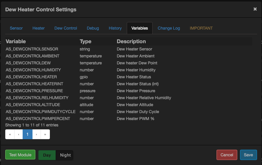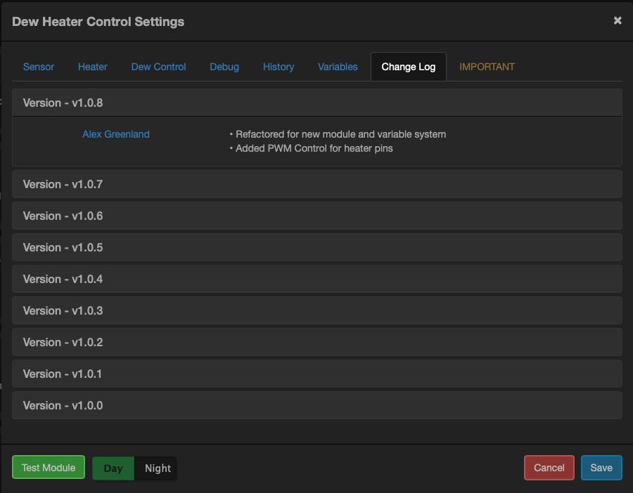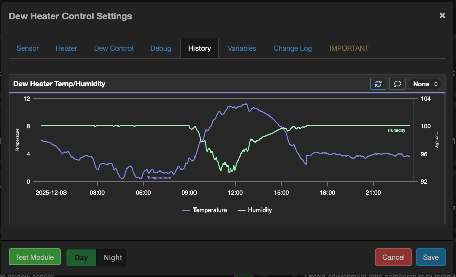 - Hardware-control modules — These interact with external devices. A common example is the Dew Heater module, which reads sensor data and automatically adjusts the dew heater.