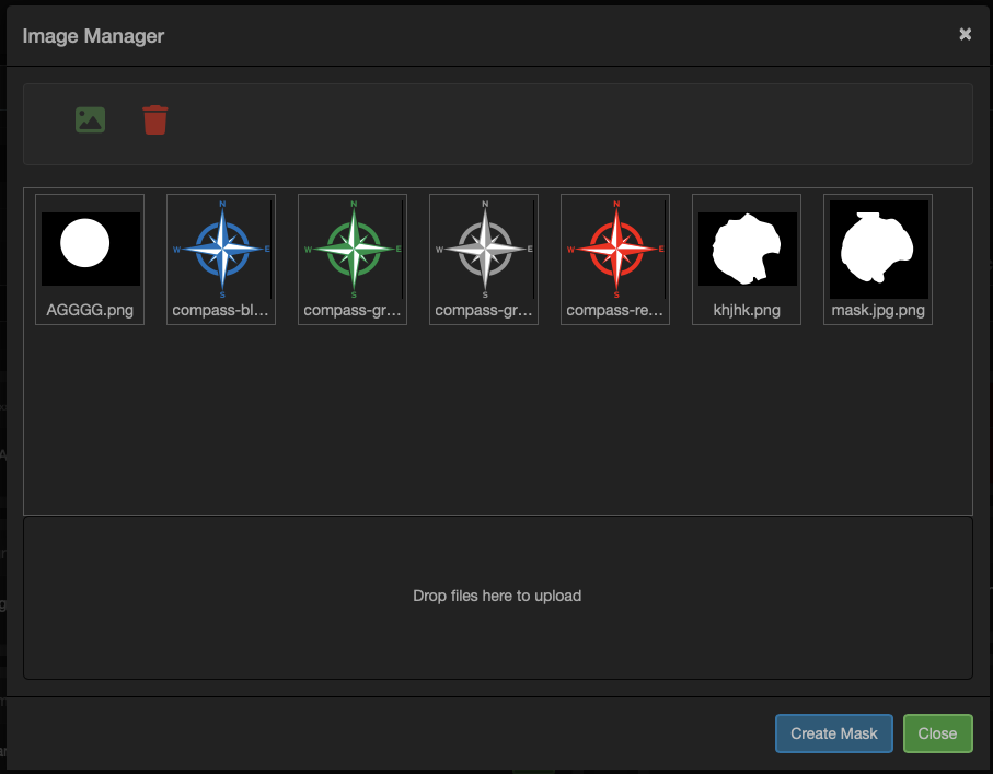 This allows the user to select or upload an image. Typically this would be used where a module requires a mask. This will allow the user to select the mask from the image library