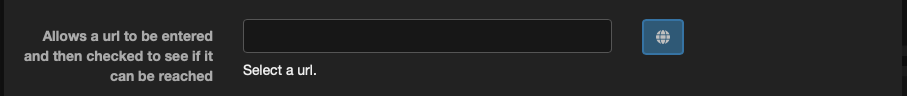 This field allows a url to be entered and validate using a button. The validation will check to ensure the url can be connected to.