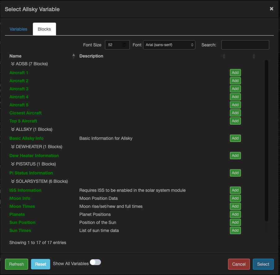 To include blocks with your module simply create the config and add them to the blocks folder withing the module repository. The installer will then copy the charts to the correct location within Allsky.
